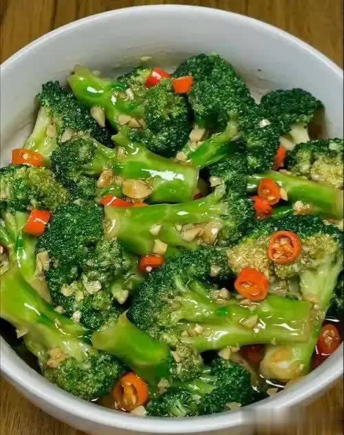 西兰花焯得碧绿脆嫩,蒜末爆香后裹着蚝油咸鲜。口感清爽又带蒜香,每一口都鲜甜爽口。