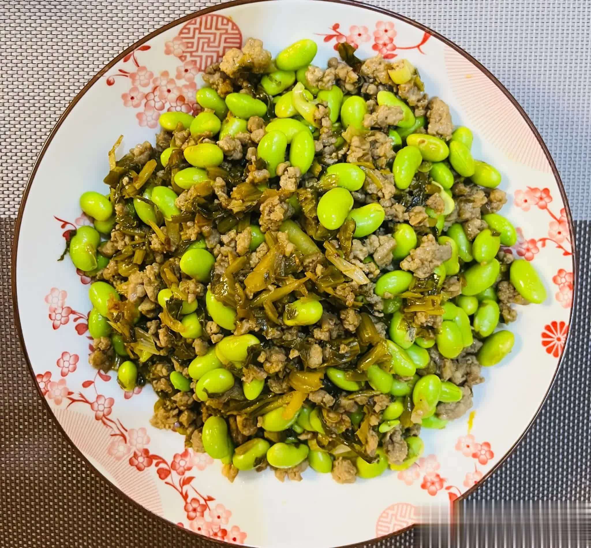 雪菜炒毛豆肉末