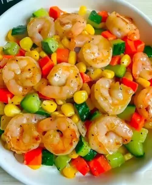 玉米胡萝卜炒虾仁
